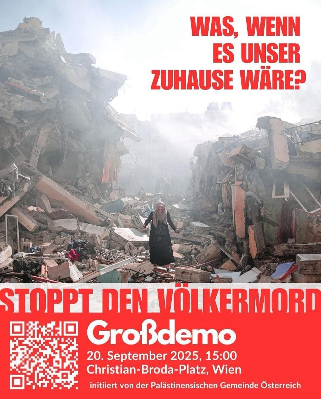 Die Großdemo wurde von der Palästinensischen Gemeinde Österreich initiiert. Sie wird von einer diversen Gruppe von Organisationen unterstützt, darunter Amnesty International, LINKS usw. Auch die SOAL unterstützt den Demoaufruf.